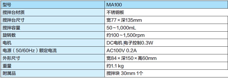 MA100日本雅馬拓磁力攪拌器的旋轉(zhuǎn)數(shù)100~1,500rpm,攪拌容量50~1,00ml,耐久性好,可以實(shí)現(xiàn)從低速到高速的穩(wěn)定旋轉(zhuǎn)。